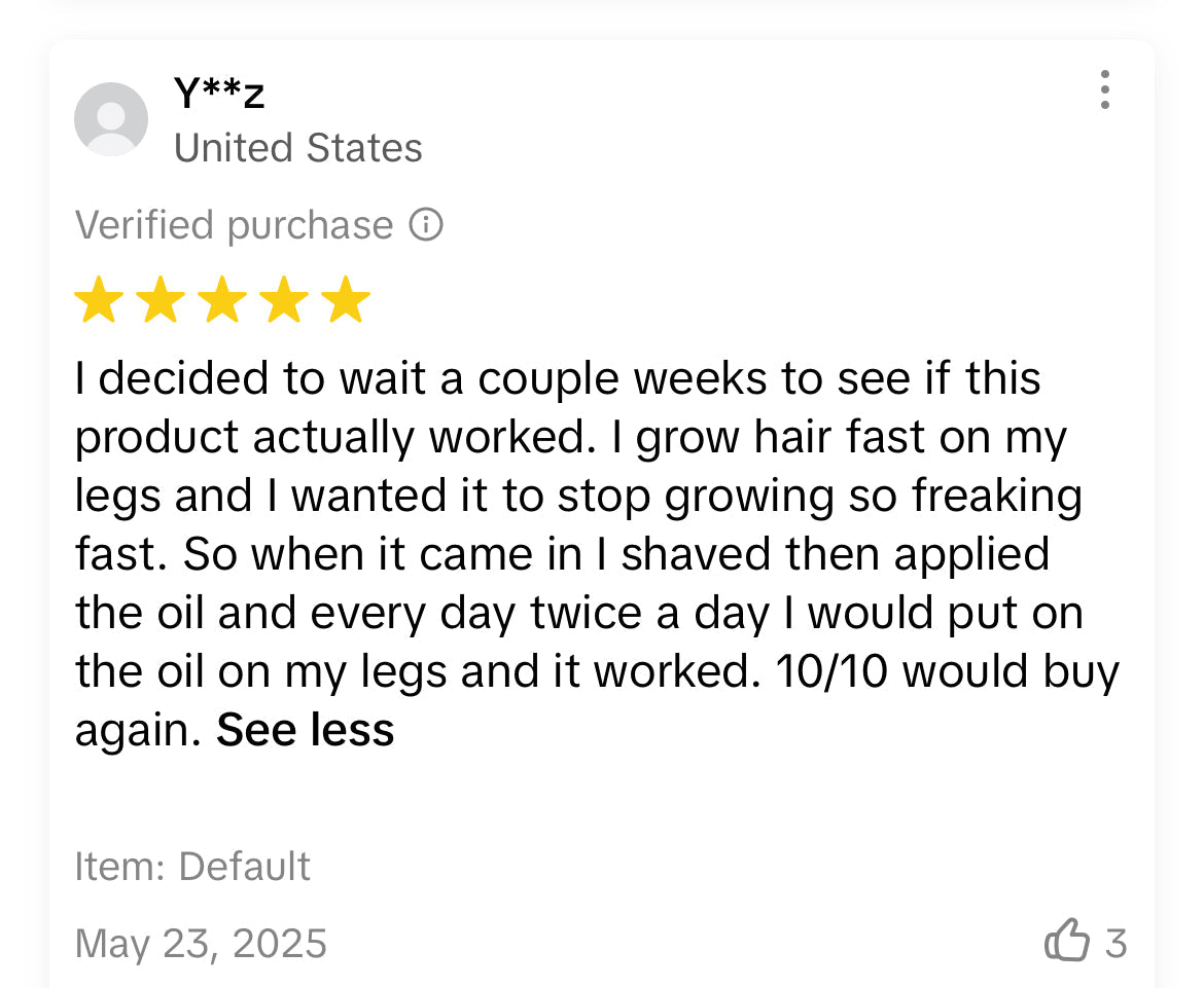 You spend hundreds of dollars and still deal with daily regrowth. Most methods only remove hair, they don't prevent it from growing back. Liora's Cyperus Rotundus Oil targets the problem at the root: it helps slow hair regrowth over time.